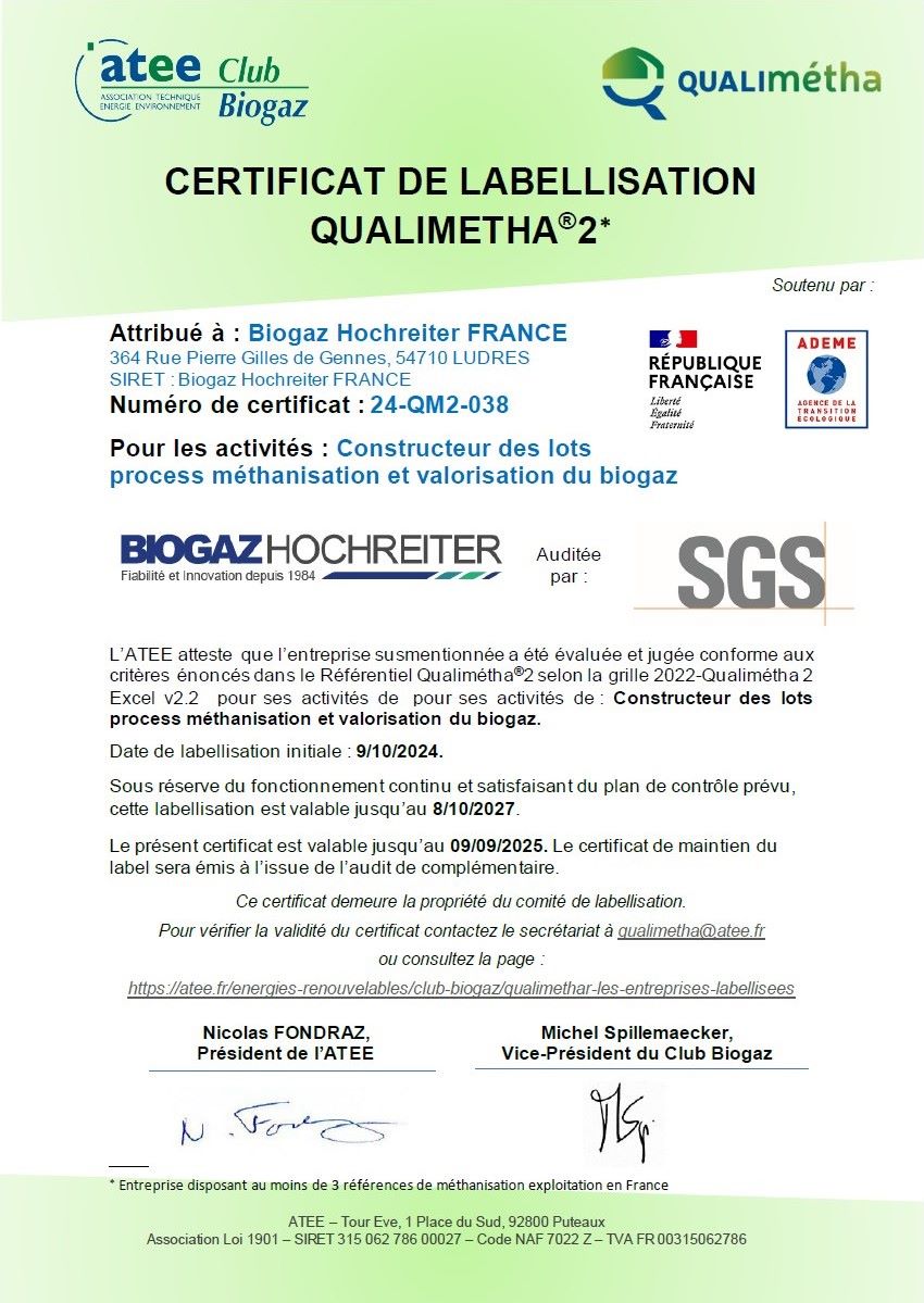 Foundation of the Biogaz Hochreiter subsidiary in France.